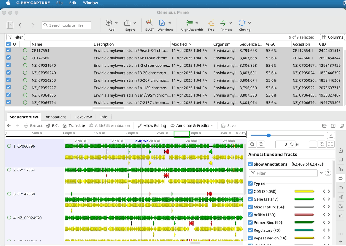 Creating multi-gene phylogenetic trees involves aligning individual genes from each taxon, followed by concatenation of alignments, and finally tree building. Here's how to perform each step in Geneious Prime: